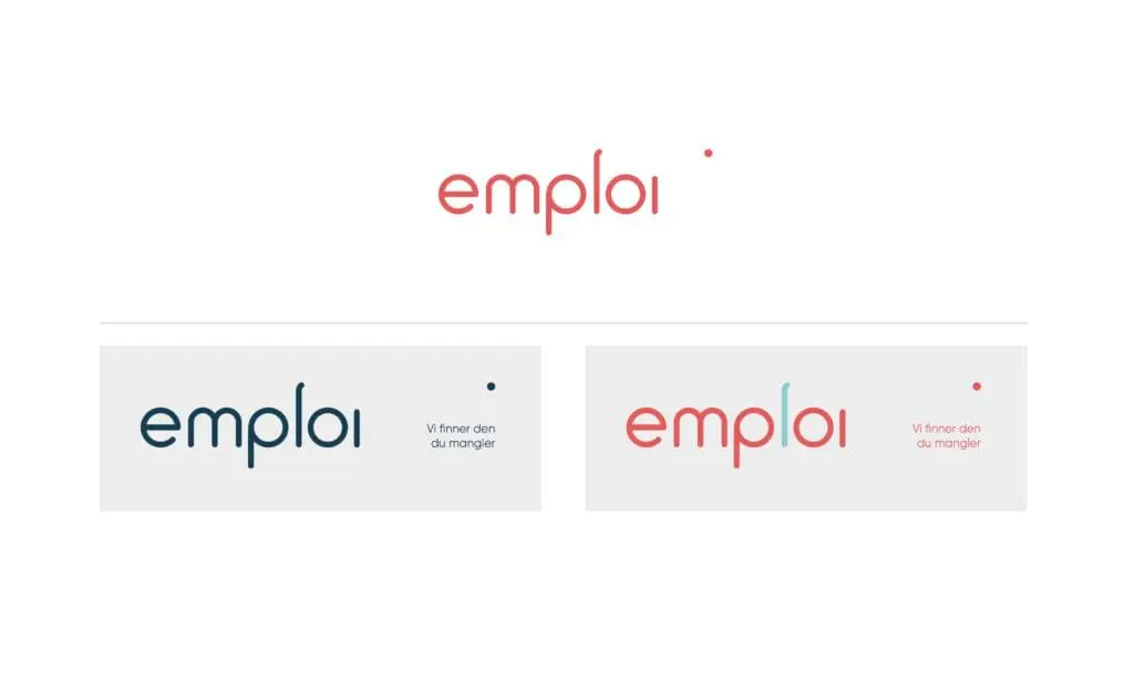 Logoen er utviklet med bakgrunn i at Emploi finner den ansatte kunden mangler. I logoen er prikken over i’en «den som mangler», mens L’en representerer emploi som leter med sitt «periskop» og finner prikken. Logoen er satt i små bokstaver med avrundet form, som gir et vennlig og personlig uttrykk, mens det helhetlige uttrykket oppfattes som trygt og pålitelig. Logoen er også tilrettelagt for animert bruk, se den her.